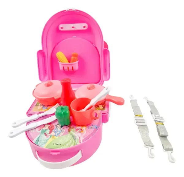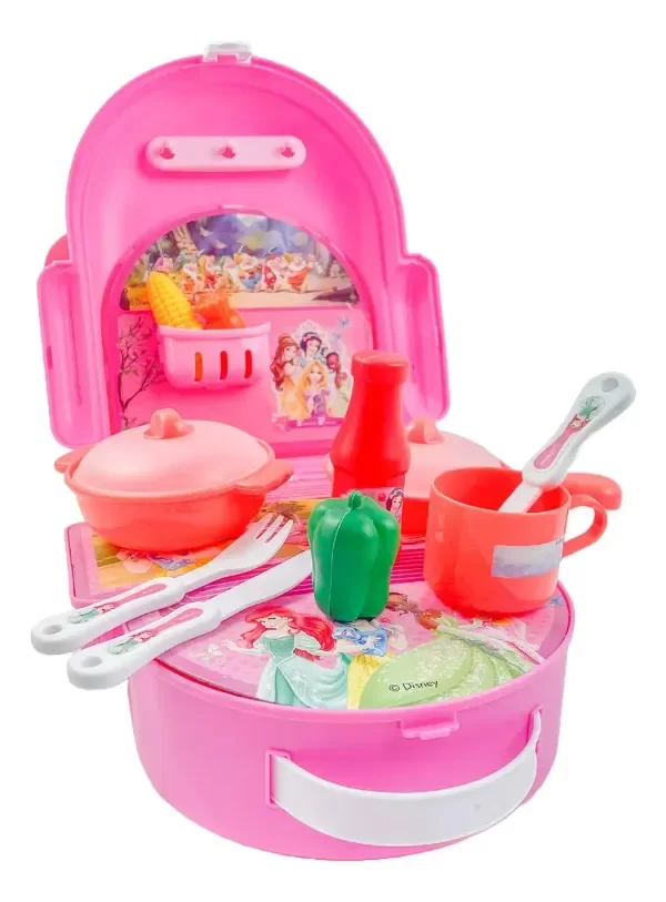 La Mini Valija Infantil Fashion Princess Kitchen es el juguete ideal para que los pequeños chefs se sumerjan en un mundo de creatividad y diversión. Inspirada en las adoradas princesas de Disney, esta valija no solo es encantadora, sino también funcional, permitiendo a los niños embarcarse en emocionantes aventuras culinarias. Diseñada para estimular la imaginación, esta mini mochila de cocina incluye todo lo necesario para que los niños comiencen a jugar, desde ollitas hasta una variedad de verduras y cubiertos.