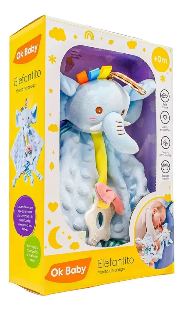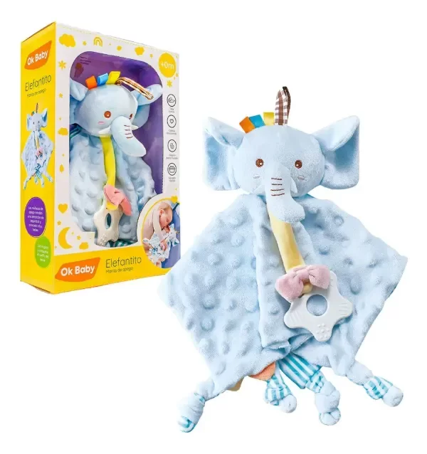 La Manta De Apego Sensorial Elefantito Celeste de OK Baby es el compañero ideal para el desarrollo y bienestar de tu bebé desde sus primeros días. Diseñada con una tela suave y acogedora, proporciona una experiencia de confort y seguridad, esencial para el crecimiento emocional de los más pequeños.